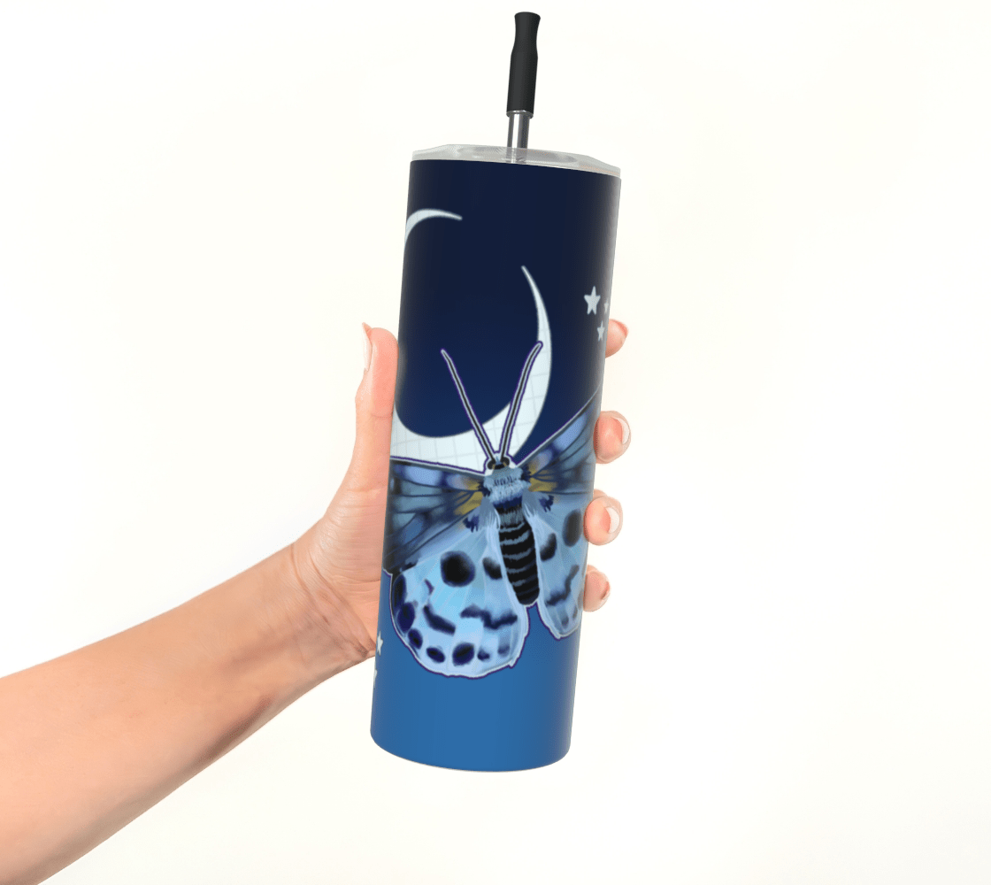 This listing is for ONE (1) Blue Tiger Moth Tumbler featuring printed artwork.