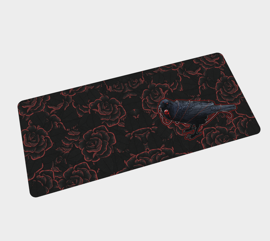 Crow and Red Thread of Fate Desk Mat - PRINT ON DEMAND
