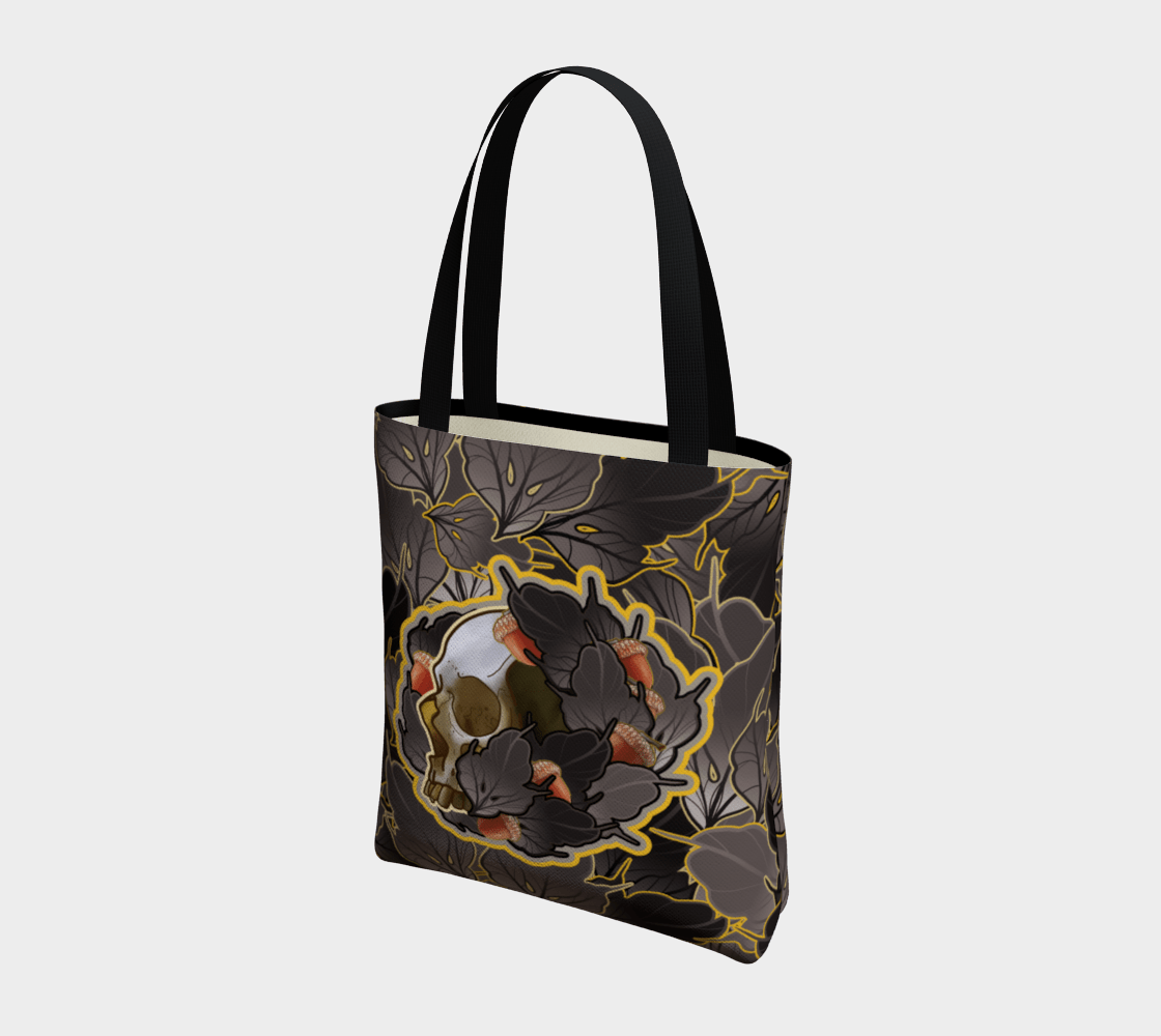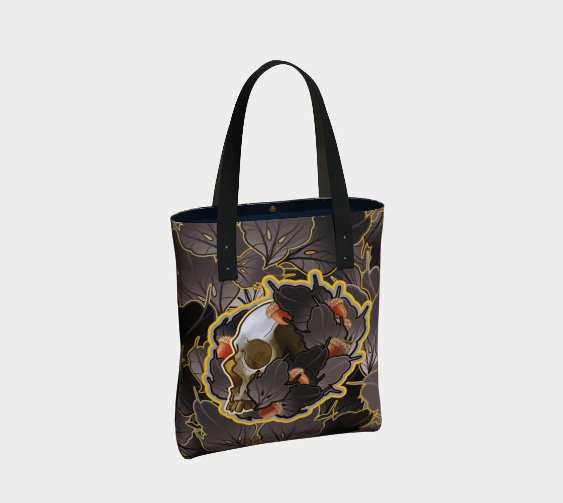 Acorn Skull Tote Bag with Cloth Liner and Magnetic Closure - PRINT ON DEMAND